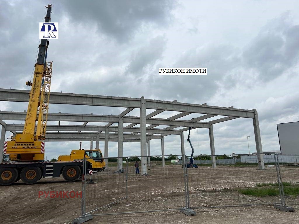 Към момента в имота е издигната стоманобетонна конструкция на сграда със ЗП 1920кв.м., кота било 10.50 м, работна височина под напречна греда 9.00м, ТИР достъп на рампа и от кота 0.