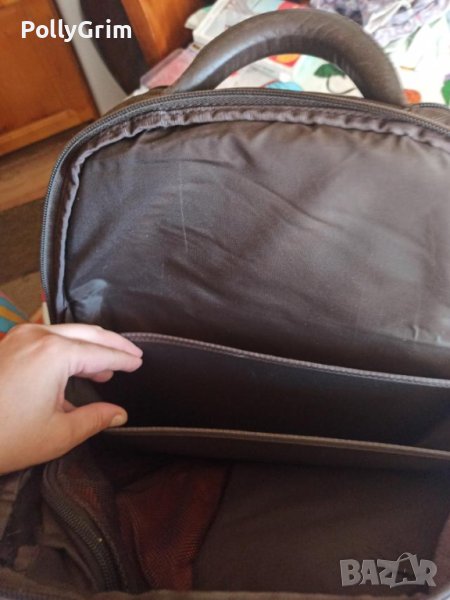 Предлагам бизнес раница за лаптоп / таблети с три вътрешни прегради. С нормални следи от употреба на кожената дръжка и гърба (видими са на снимките), но е запазена и с уникално качество.