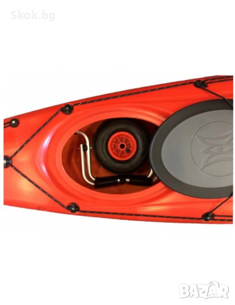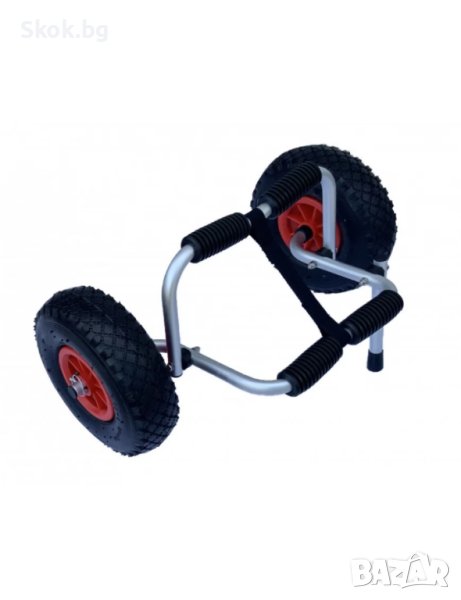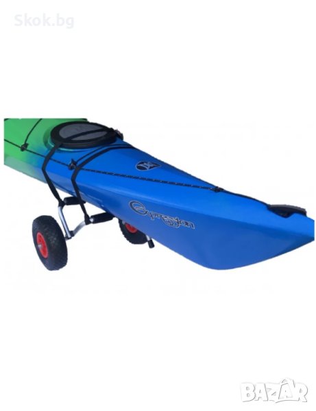 каяка или да се постави под бънджито на вашия суп. Товароносимостта от 50 кг ще ви позволи да вземете наистина големи плавателни съдове на тази малка количка, а два ремъка (включени) здраво закрепват каяка ви върху количката. Количката е изработена от устойчива на корозия алуминиева рамка с гумени подложки на всяко рамо за защита на вашия каяк/борд.