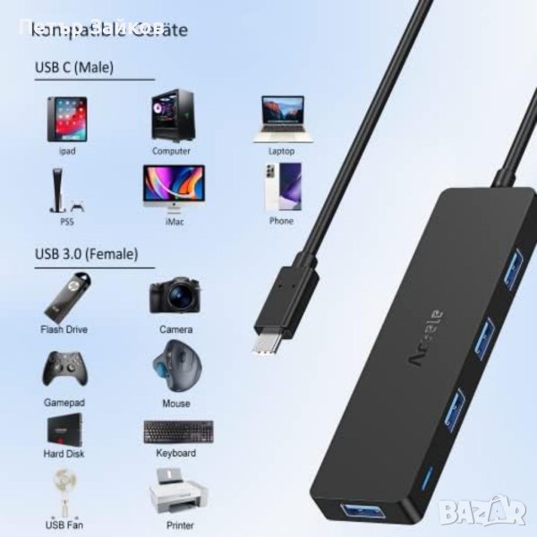 60 см кабел + 4 USB 3.0 порта: можете да удължите издръжливия USB кабел на концентратора за лесно използване на настолен компютър. Подарете си повече места и възможности за използване. Aceele USB C хъб преобразува USB-C порта на лаптопа в 4 USB 3.0 порта, които могат да бъдат свързани към клавиатура, мишка, USB памет, телефон и др.