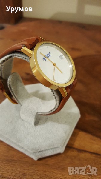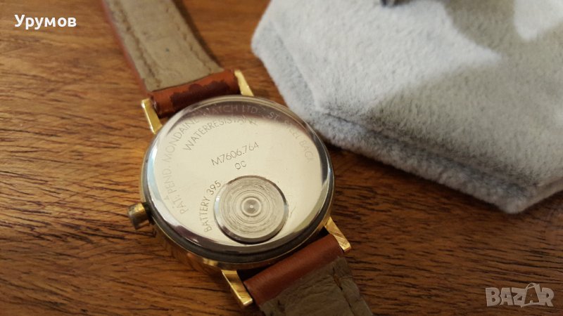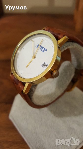 Оригинален часовник Mondaine mod. 7606.764/OC - SWISS MADE. Интересен модел брандиран с логото на голф турнира VOLVO TOUR. Секундната стрелка е с формата на стик за голф. Кварцов механизъм, който поддържа изключително точно време. Стоманена каса. Диаметър на часовника без корона 33мм. Оригинална кафява каишка от естествена кожа /има следи от употреба/. Обичайни следи от употреба по касата. Драскотина на стъклото между 11 и 13 часа.