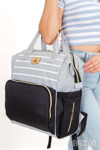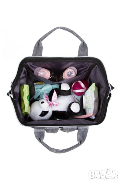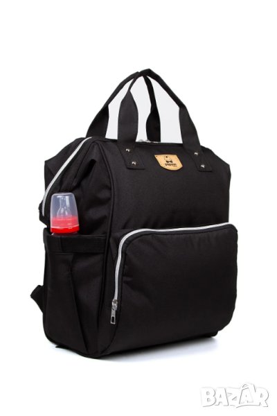Практичен дизайн и голям капацитет - раницата има различни джобове за съхранение, както и изолиран джоб за бутилка. Има и допълнителен джоб за мокри кърпички. Можете да съхранявате бутилка с мляко, бутилка с вода, бебешки дрехи, пелени, мокри кърпички в отделни джобове, което улеснява намирането на това, което търсите.
