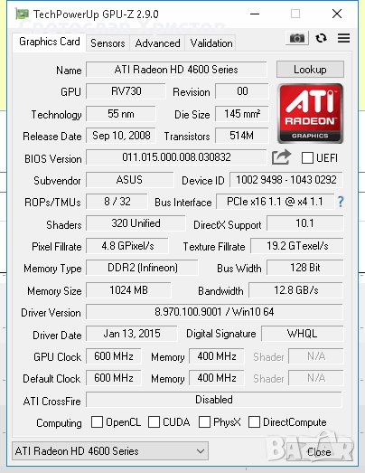 Продавам видео карта AMD Asus HD4650 1GB DDR2 128bit VGA DVI HDMI LP PCI-E → Обява 41433897