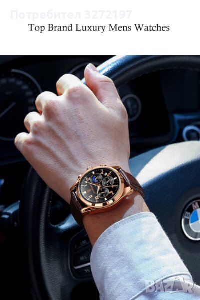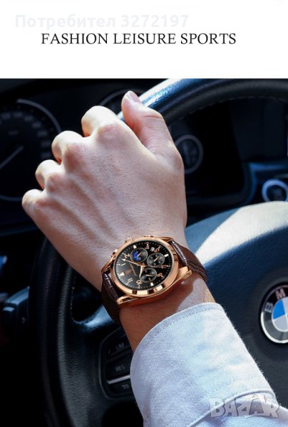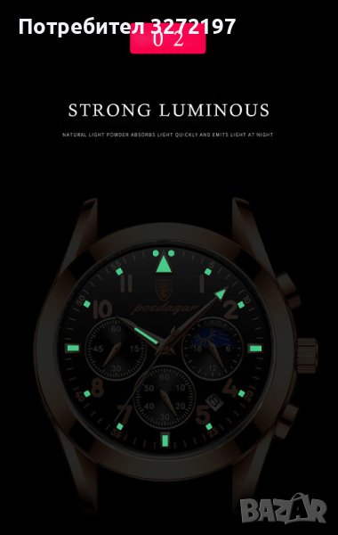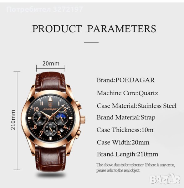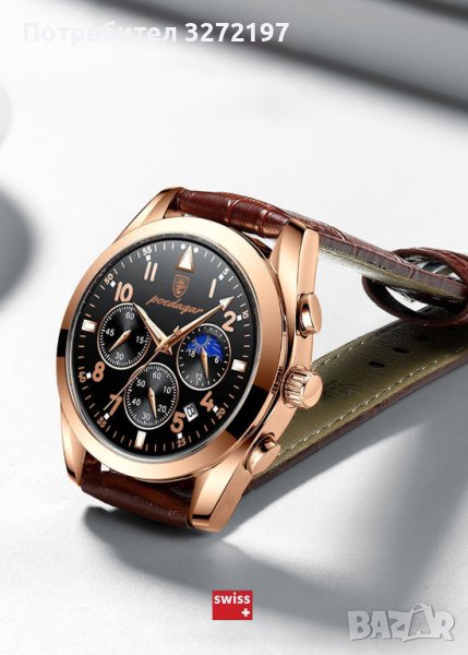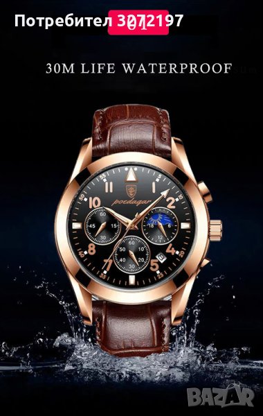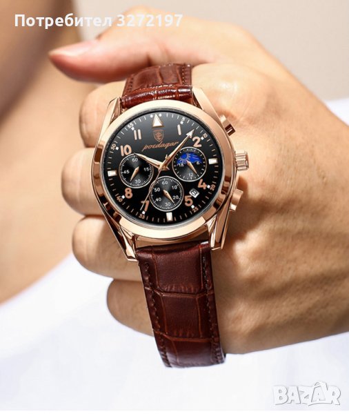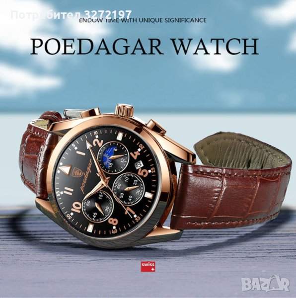 POEDAGAR - кварцов часовник,дата,кожена каишка