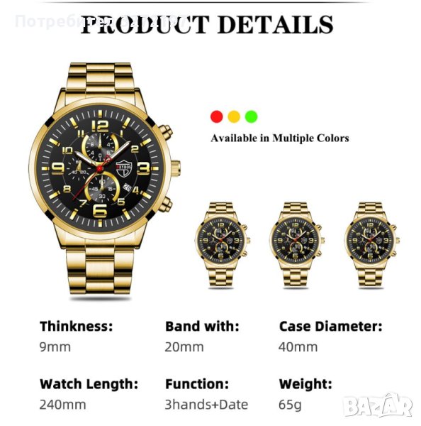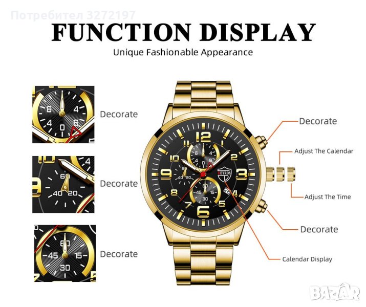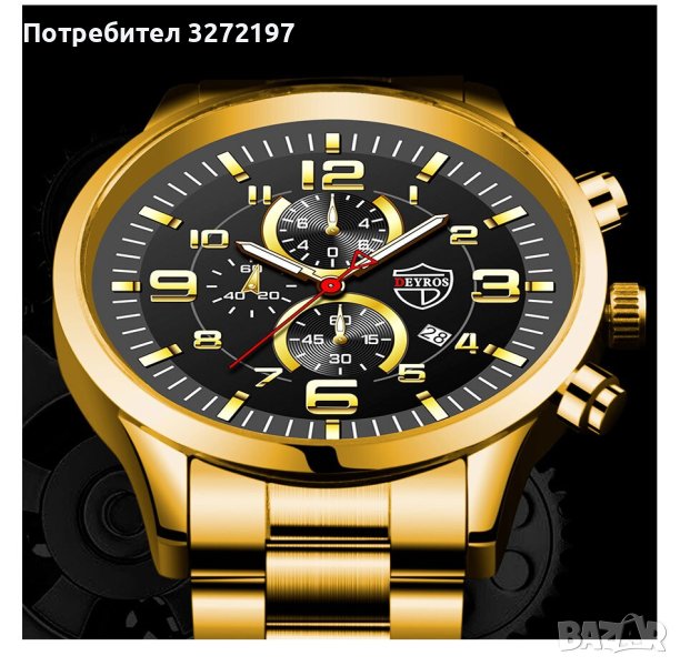DEYROS - кварцов часовник,дата,неръждаема стомана