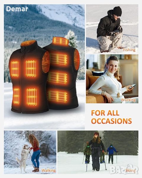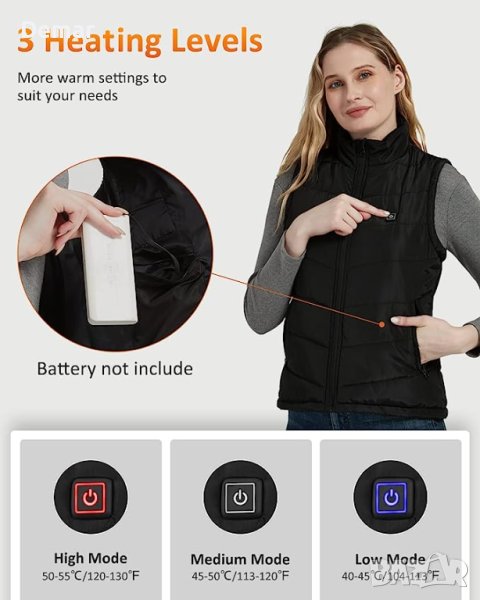 Бъдете топли и стилни с нашите дамски супер топли жилетки с отопление. Изработени от най-новите въглеродни влакна и висококачествен TPU нагревателен лист, тези жилетки предлагат изключително запазване на топлината. Осемте нагревателни елемента от въглеродни влакна генерират топлина в яката, талията, корема и горната част на гърба, осигурявайки топлина на тялото. С бързо нагряване само за 30 до 50 секунди ще се почувствате уютно за нула време през тези студени зимни дни. Тънкият дизайн с линия на талията не само подобрява фигурата ви, но и осигурява допълнителна изолация. Нашите отопляеми жилетки са направени с мисъл за удобство и могат лесно да се поддържат. Прегърнете зимния сезон с нашите модерни, функционални и уютни жилетки с отопление.