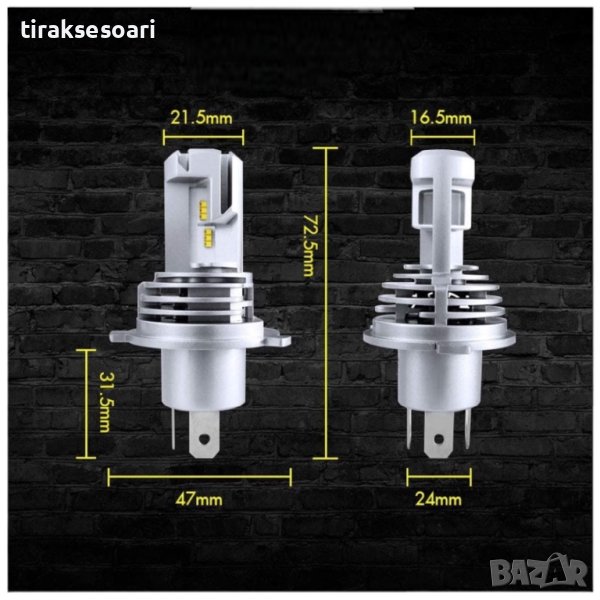 Комплект LED Диодни крушки H4 за по-мощно и равномерно осветление.