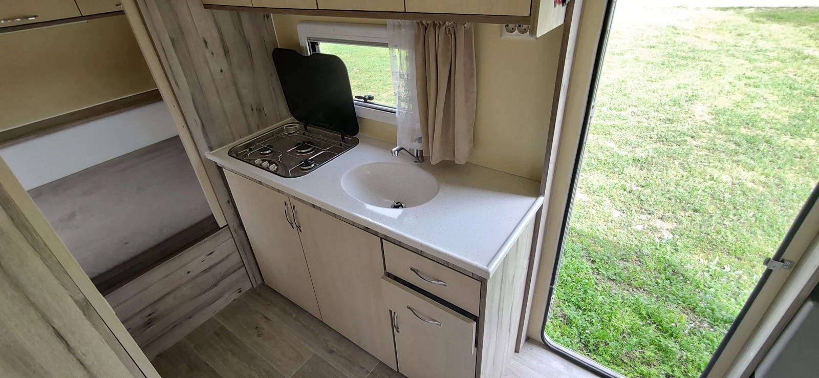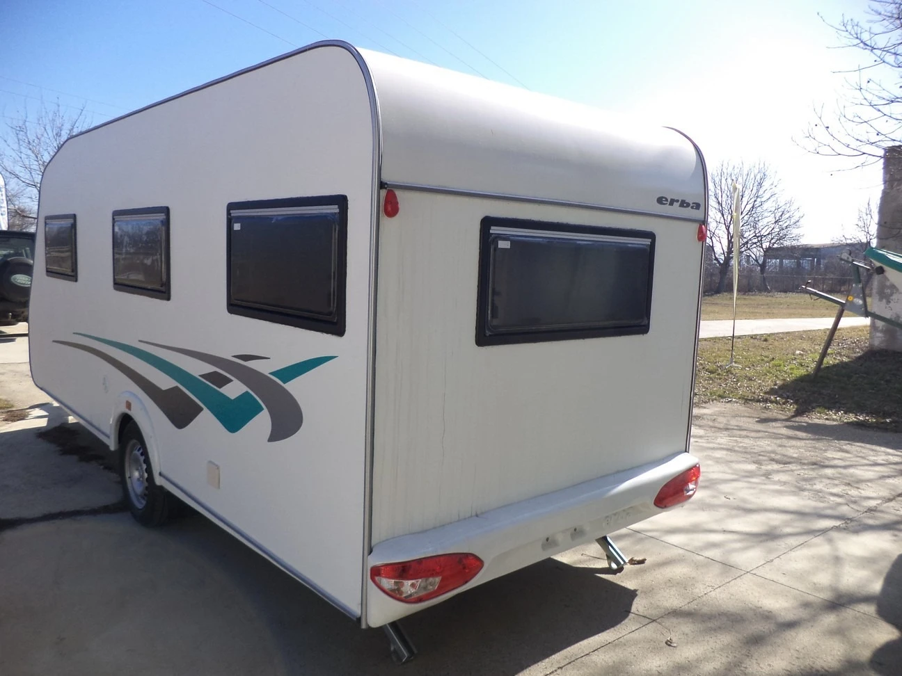 Каравани ERBA caravan 4. 7m и 5. 25m, цена от 7500 евро НОВИ! ! ! Продаваме нови каравани с марка ERBA Дълги: 4. 7м 7500 евро 5. 25м 8000 евро Стандартно оборудване: Караваните са изработени от термопанели с външно и вътрешно покритие от фибростъкло и изолация с плътност 28. Изработени са на база на немско шаси с 15 цолови гуми и анти вибрационен теглич. 1. 4, 7m с напречна спалня, кухня, баня и кът за сядане; 2. 4, 7m с френска спалня(надлъжна), кухня, баня и кът за сядане; 3. 5, 25m с напречна спалня, кухня, баня и кът за сядане; 4. 5, 25m с френска спалня(надлъжна), кухня, баня и кът за сядане; Външно и вътрешно осветление LED. Съд за чиста вода 90л с хидрофорна помпа, ел. инсталация на 12V и 220V, акрилни прозорци в рамка с вътрешна рамка с инсектицидно и слънцезащитно руло, люк 40х40см бял, люк с вентилатор 28х28см. Допълнително оборудване срещу заплащане: 1. Тоалетни а) химическа Porta Potti Excellence White - 150 евро б) касетъчна със сервизна врата - 700 евро 2. Газови котлони Thetford с три гнезда - 280 евро 3. Бойлер а) 6л, 12V - 290 евро б) 6л, 220V - 327 евро в) 10л, газ - 839 евро 4.