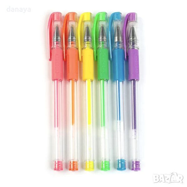 Комплект от 6 броя цветни гел химикалки, с неоново мастило и ярки флуоресцентни цветове. Подходящи за творчество и украса на различни проекти, картички и други.