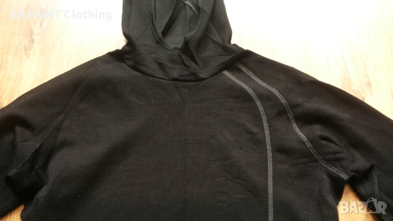Марка: HELLY HANSEN Outside 100% Merino wool Inside 100% Polyester - суичър отвън е 100% Мерино вълна отвътре е 100% Полиестер L185-5 Размер: S - ширина под мишниците при нормално положение 48 см , разтяга се до 63 см , дължина 70 см без качулката.