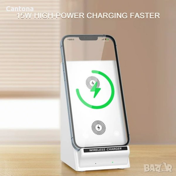 15W безжично бързо зарядно за мобилен телефон. Настолна стойка, държач за писалка и безжично зареждане