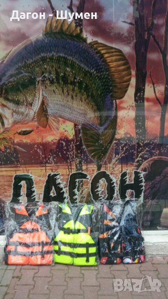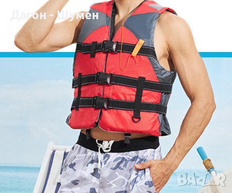 Спасителна жилетка с 3 каишки и свирка за сигнализация.