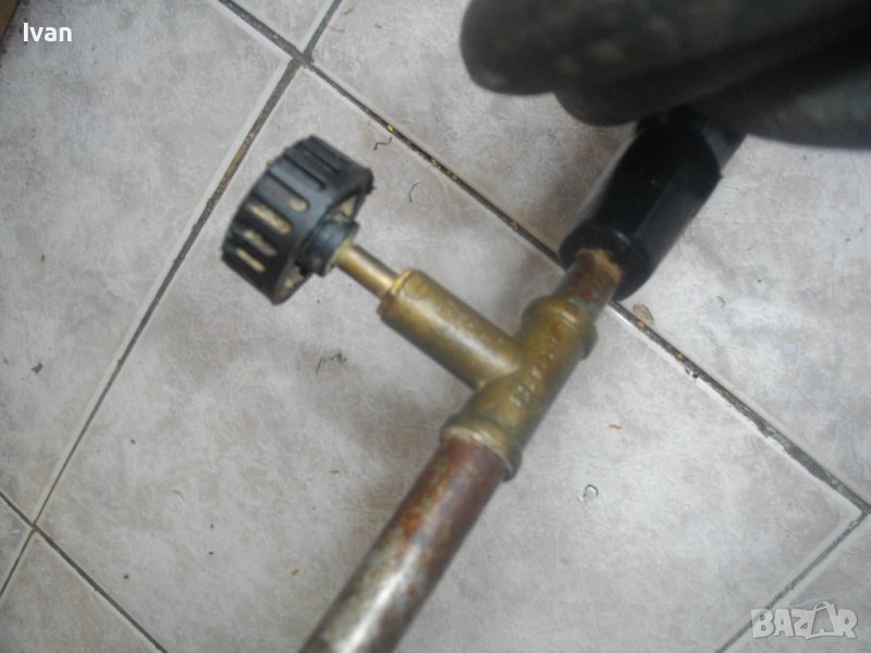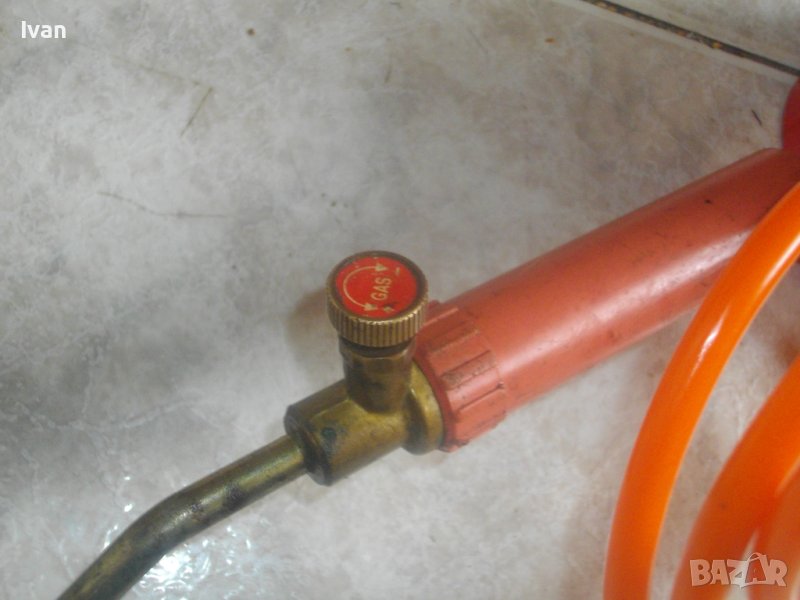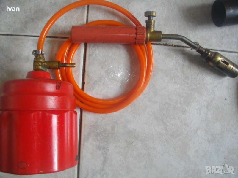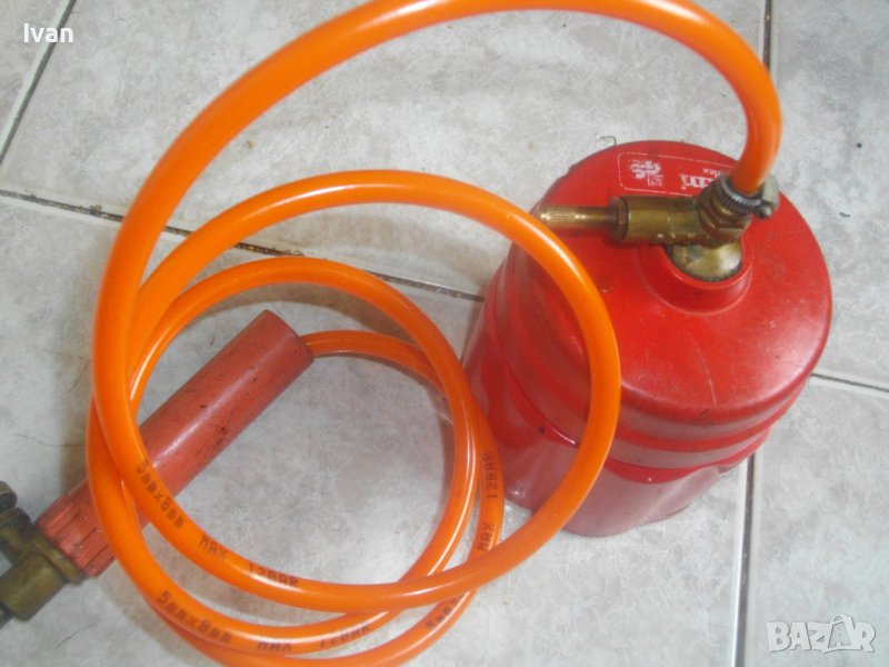 ОПИСАНИЕ на горелка газова с черен маркуч - 139 лв.. Старо качество, немско произовдство. Много запазен външен вид и отлично техническо състояние. Масивен дебел гумиран маркуч ф 20 мм. Маркуча е отличен, без напуквания и без наранявания. Дължина 2,5 м. Присъединителна гайка щуцер ф 20 мм на свободният си край. Горелка - масивна, дължина 380 мм, масивен накрайник отпред ф 40 мм с 5 дупки за пламъка. Спирателен кран на корпуса.
