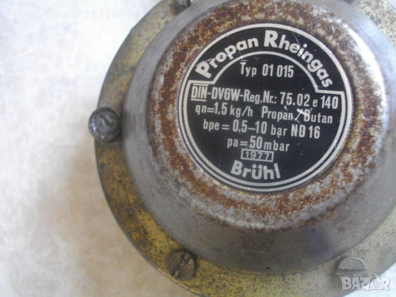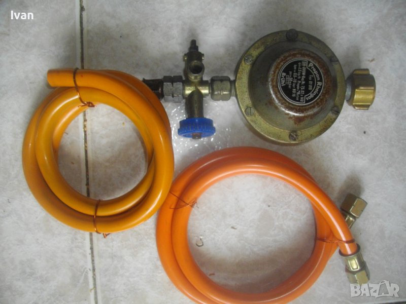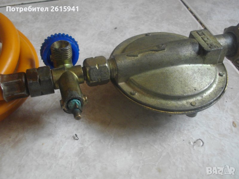 ОПИСАНИЕ на редуцир вентил с маркуч - 59 лв. За газ пропан-бутан. Старо качество, немско висококачествено произовдство. Масивен, голям. Алумин и стомана. Марка GOK Tyo 01015. 1,5 kg 0q5 - 10 bar PA - 50 mbar.Спирателен кран към вентила на щуцера. Маркич ф 8 мм, с присъединителна гайка. Отрязан от другата страна /за скачване със скоба/. Дължина на маркуча - 40 см.