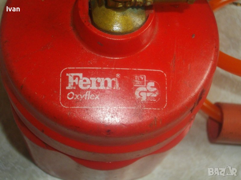ОПИСАНИЕ на бижутерска горелка малка, холандска професионална с тяло за патрон газ пропан.бутан, маркуч и горелка - 159 лв. Марка - FERM Oxyflex.Запазен външен вид и добро техническо/работно състояние. Тяло корпус за поставяне на газов патрон за горелка - универсално, на резба двете части на корпуса. Маркуч тип ПВЦ размер 5 мм х 8 мм за налягане до макс 12 бара - упоменато на него. Дължина на маркуча - 40 см. Спирателен бронзов кран на тялото на газов патрон. Горелка мини - тип бижутерска, дължина 250 мм, отпред контактна дюза масивна брнзова ф 20 мм с 8 дупки за пламъка за прецизно рязане/запояване. Бронзов малък спирателе кран. Пластмасова дръжка на резба. Комплектът е почти нов, със запазен външен вид и отлично техническо/работно състояние.