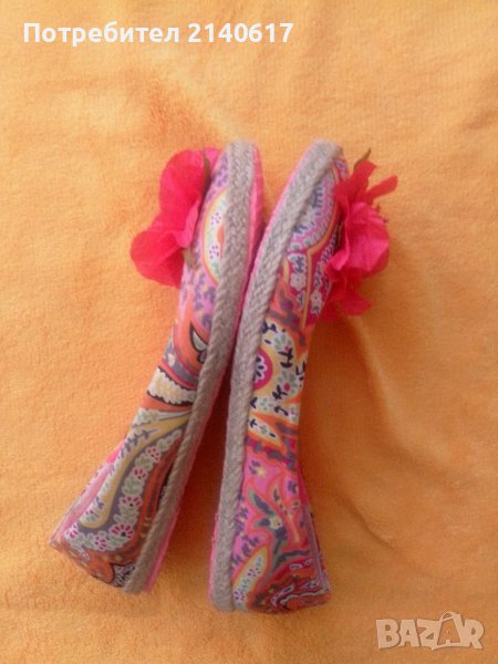 Пантофки тип еспадрили, в свежи летни цветове и ефектно цикламено цвете; сая- текстил.ДЪЛЖИНА на стелката вътре-25см=N:39