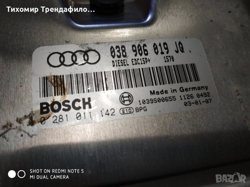 ECU Audi A4 B6 038906019JQ ,038 906 019 JQ, 0281011142 0 281 011 142 , EDC15P+ , 1039S00655 компютър, снимка 1 - Части - 41442943 ECU Audi A4 B6 038906019JQ ,038 906 019 JQ, 0281011142 0 281 011 142 , EDC15P+ , 1039S00655 компютър, снимка 2 - Части - 41442943 ECU Audi A4 B6 038906019JQ ,038 906 019 JQ, 0281011142 0 281 011 142 , EDC15P+ , 1039S00655 компютър, снимка 3 - Части - 41442943 1/3