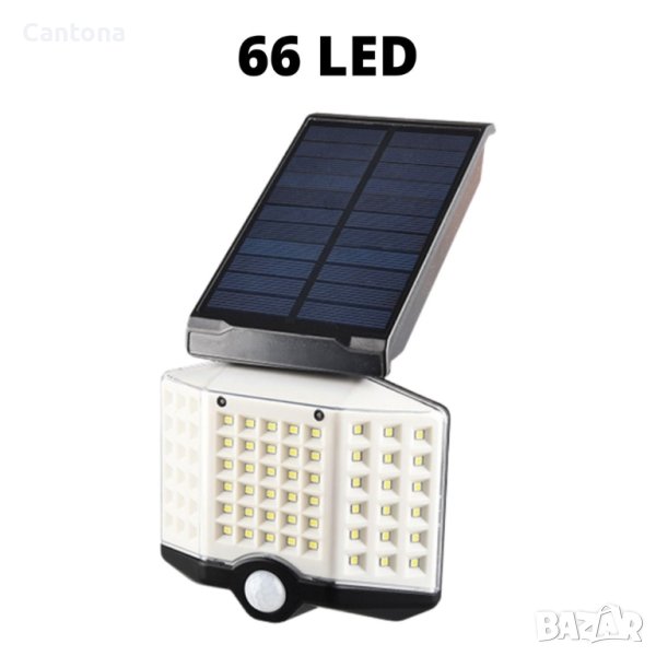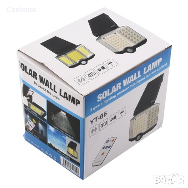 Соларна ротационна стенна лампа, с фотоклетка и датичк за движение, YT-66B, дистанционно, 66 диода