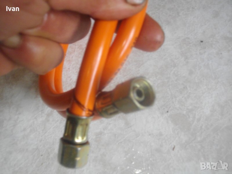 ОПИСАНИЕ на къс маркуч - 39 лв. Нов, оригинален. Дължина 40 см. DIN DVGW. За газ пропан-бутан, за редуцир вентил или за директно скъчване към бутилка и горелка. Захват - от двете страни резбови оригинални гайки външен размер М14.