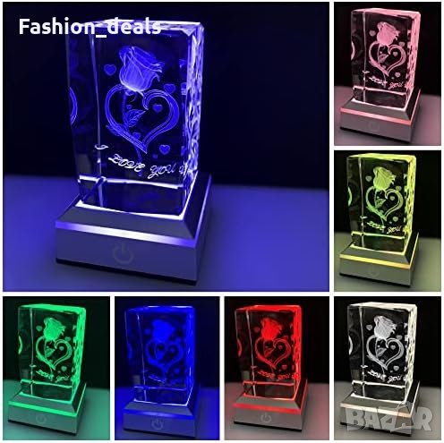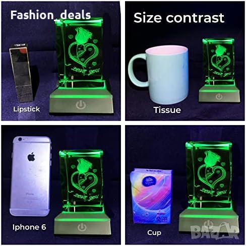 Нова 3D роза и сърце Кристал Многоцветна нощна светлина/Декорация Подарък