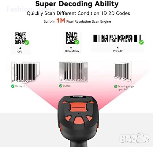 Нов индустриален баркод скенер с безжично зареждане стойка, Bluetooth & 1968 Feet Разстояние на пред