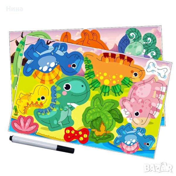 Дървена магнитна книжка с динозаври 🦖