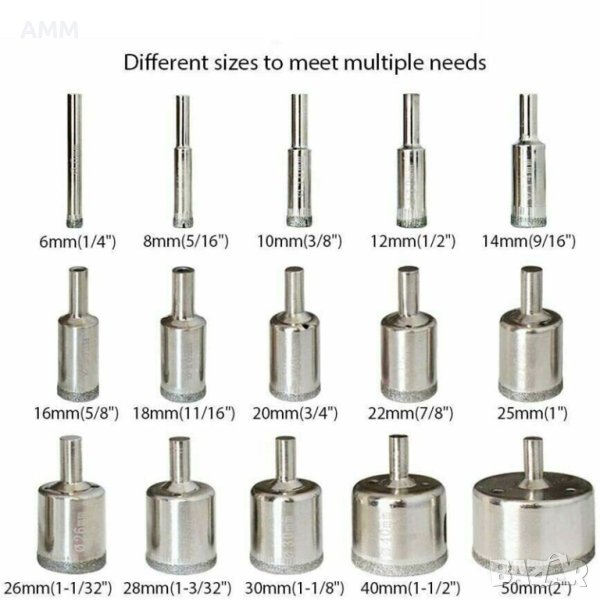 Диамантени боркорони за стъкло , фаянс ,  керамика - 15бр., снимка 1 - Диамантени и режещи инструменти - 41446219 Диамантени боркорони за стъкло , фаянс ,  керамика - 15бр., снимка 2 - Диамантени и режещи инструменти - 41446219 Диамантени боркорони за стъкло , фаянс ,  керамика - 15бр., снимка 3 - Диамантени и режещи инструменти - 41446219 1/3