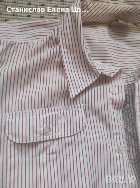 Мъжка риза на фирмата Kenvelo, къс ръкав, бяла на тънки червени райета, като нова. Към нея дънкови панталонки Tom Tailor, размер 32, без еластан.