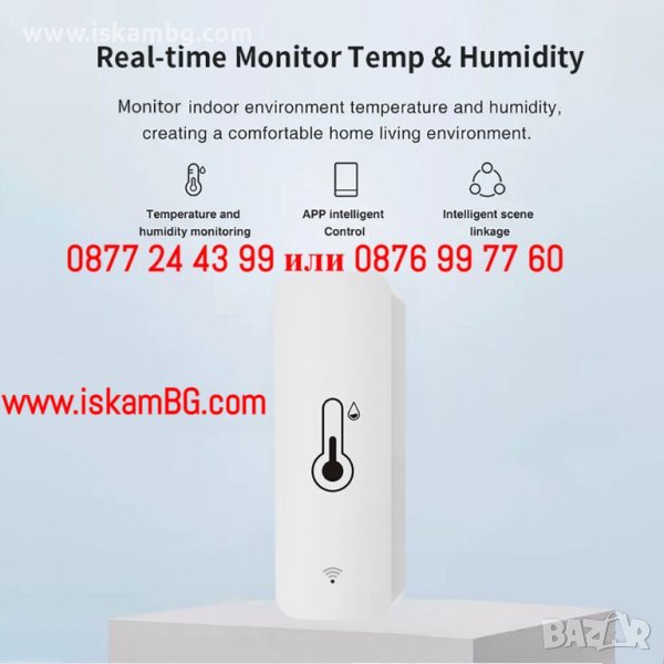 Измерва в реално време промените в температурата и влажността.