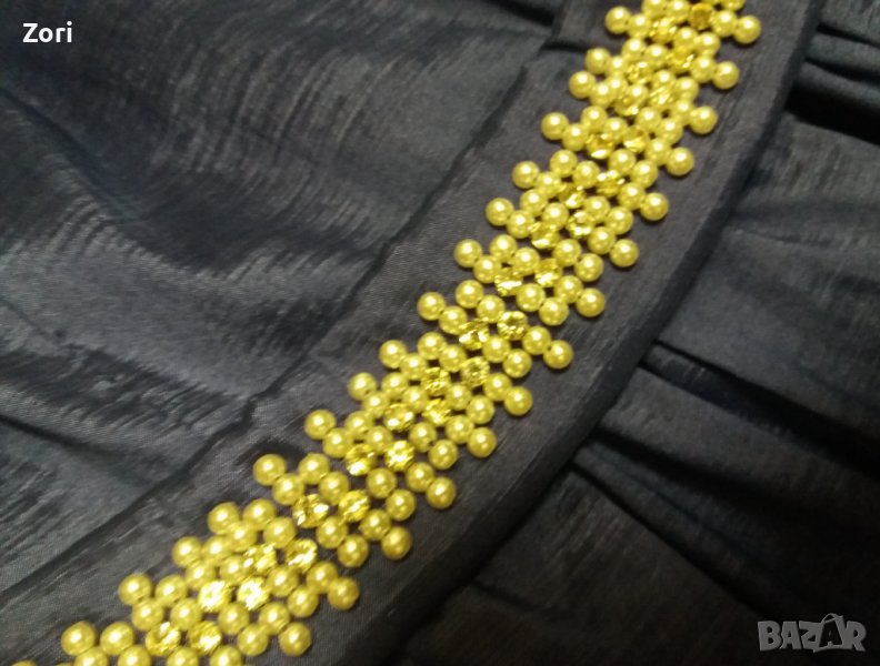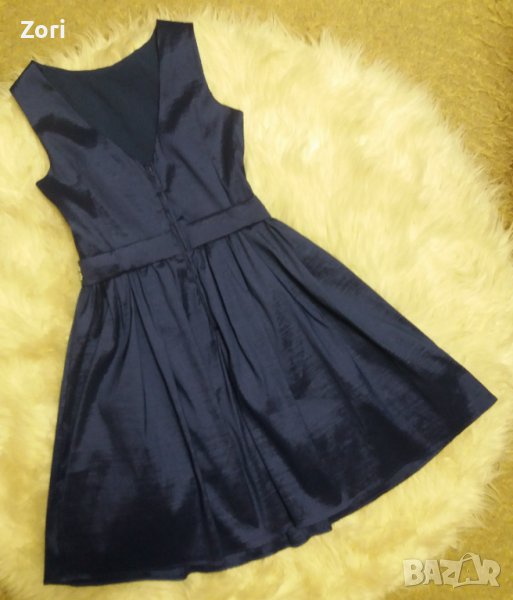 Тъмносиня рокля с вграден колан с бели перлички и сребристи камъчета → Обява 41448641