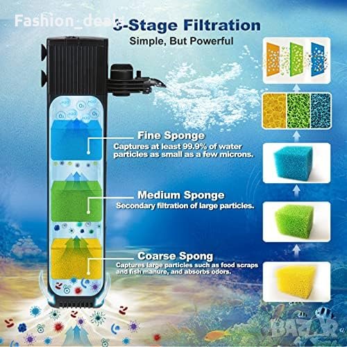 Нов Вътрешен филтър за аквариум с 3-степенна филтрация/10W