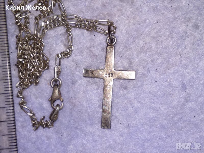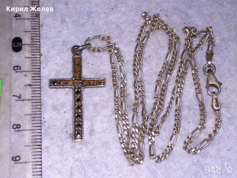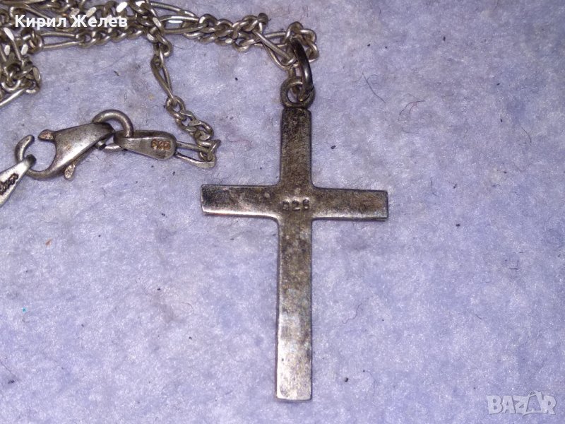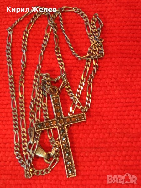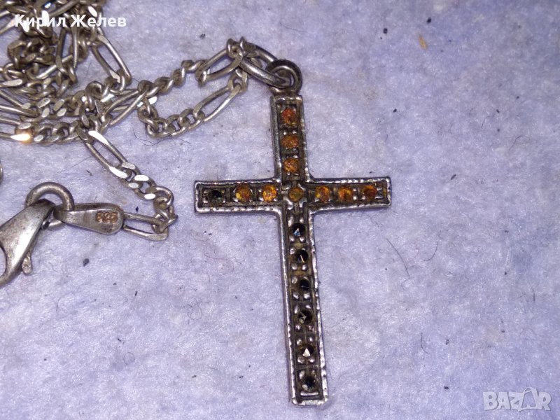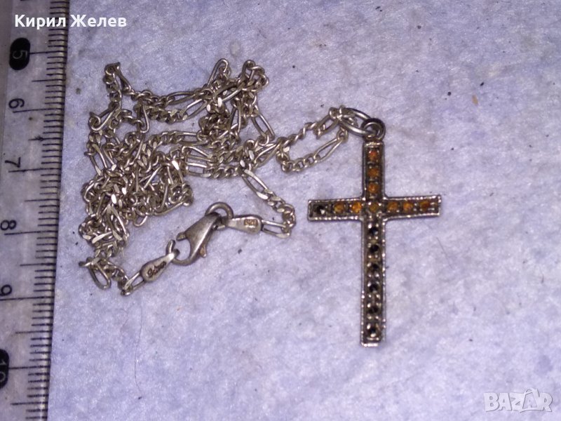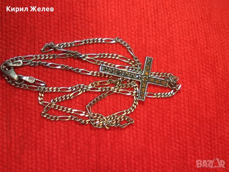 Стар МАРКАЗИТЕН СРЕБЪРЕН АРТ КРЪСТ СРЕБРО 925 с АВТОРСКА СРЕБЪРНА 925 КАРТИЕ ПЛЕТКА ВЕРИЖКА 38533