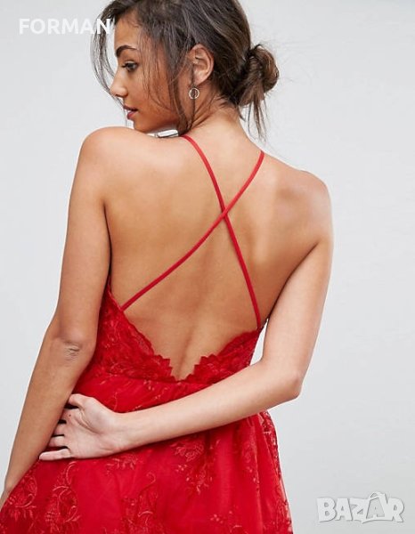 НЕВЕРОЯТНО КРАСИВА червена дантелена рокля с отворен гръб → Обява 41451258
