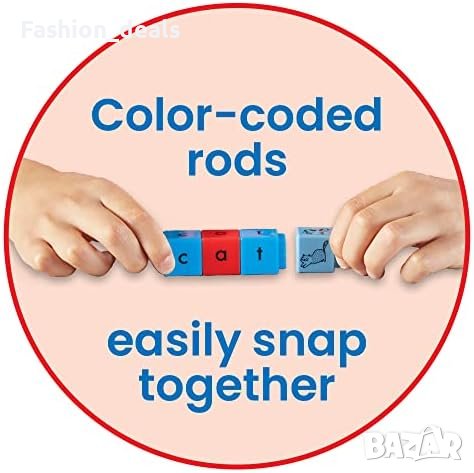 Развива интуицията и уменията за разчитане на думи Подпомага фонемичната осъзнатост и изграждането на CVC думи Цветни кубчета, лесно съединяващи се за учене на азбуката Пластмасови блокчета, подходящи за Монтесори методи Включва 82 кубчета с малки букви и учителско ръководство