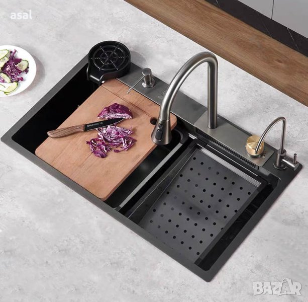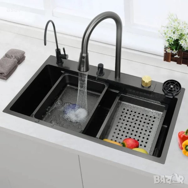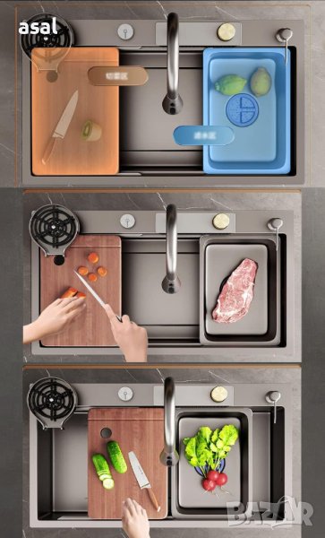 Чисто нова висококачествена мултифункционална мивка от неръждаема стомана. Създава многофункционално работно пространство, за да можете удобно да миете плодове и зеленчуци с нейния