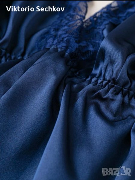 Чисто нова сатенена, изключително удобна пижама. Цвета е тъмносиньо. В размер S (36). 100 процента поли естер. Предлагаме с преглед и тест!