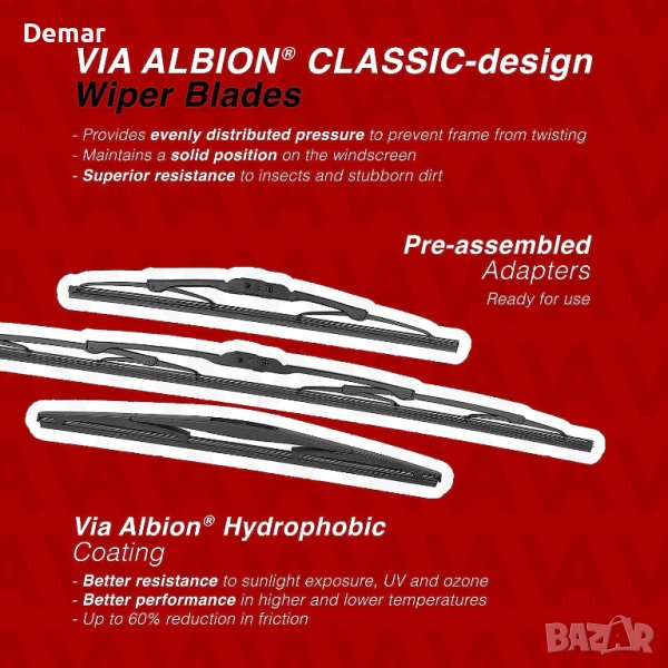 Представяме ви нашите перки за чистачки VIA ALBION, специално проектирани за MAZDA 2 [2-ро поколение/DE]. Размерите на чистачките са приблизително 600 mm за страната на водача, 340 mm за страната на пътника и 350 mm за задната чистачка. Тези чистачки предлагат работа при всякакви метеорологични условия, гъвкавост и аеродинамика, тествани обстойно при предизвикателни условия, включително проливен дъжд в Peak District, Isle of Skye, Highlands, Brecon Beacons и Snowdonia, както и снежни бури.