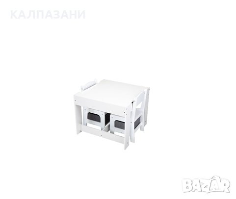 Детска Маса с 2 Столчета, Двустранна с Черна Дъска, Кутии за Съхранение, Комплект от Дърво - за Игра, Учене, Хранене - WHITE