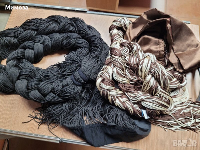 Оплетени на плитка,за да не се сплитат и прибрани.