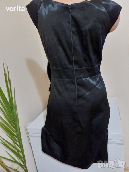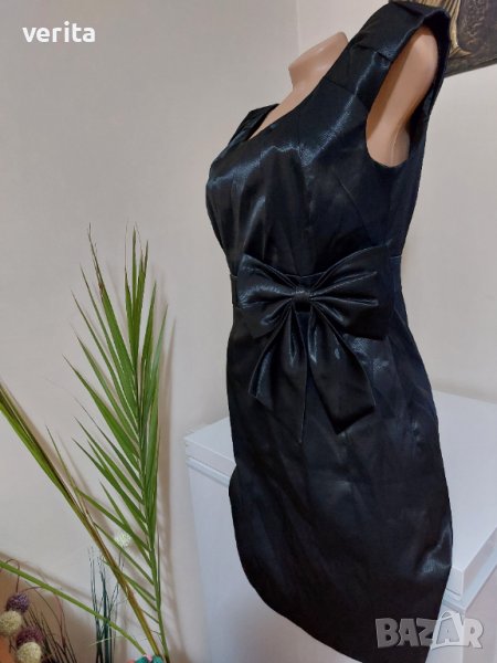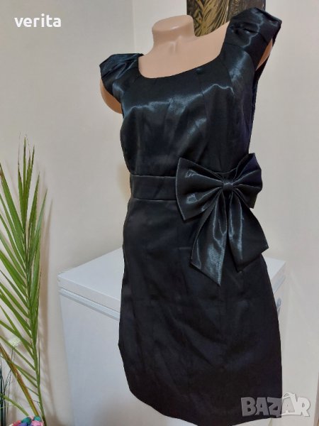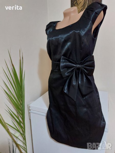 Официална черна сатенена рокля с красива панделка. Размер по етикет L.