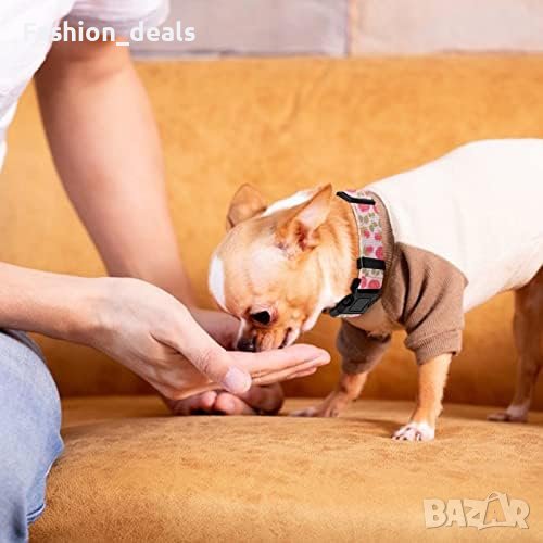 Модерен нашийник за кучета със симпатична розова шарка, предназначен специално за малки женски кученца.