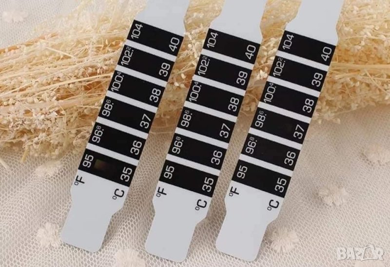 Нови ленти-термометри за измерване на температура на челото. Подходящи за малки деца и възрастни. Мерят за секунди. 2 броя за 10 лв. Многократни! Могат да се ползват с години!