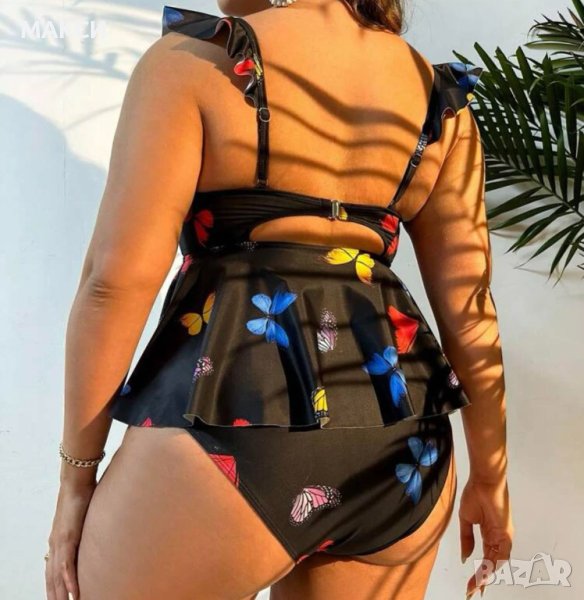 Макси луксозен еластичен комплект бански танкини с подплънки и кор.презрамки в модерен десен с пеперуди