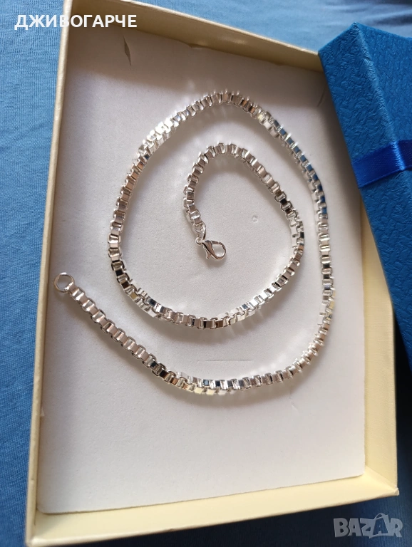 Чисто нов, масивен/ верижен сребърен комплект- дълги ланец и гривна. В кутия. → Обява 41464632