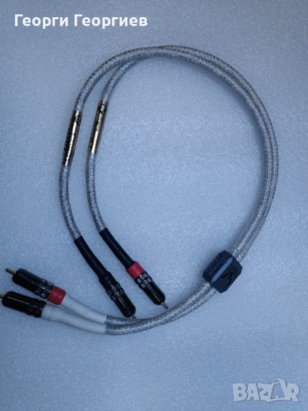 Подробности директно от производителя: Cosmic-Audio Reinsilber Reference 7, 2x75cm This cables are made of solid puresilver - not only silvered - it is pure silver 99,99%. The best conductor material worldwide - acts very fast. Try this Cables and play it with your Music, you will hear the difference and get addicted. By using the new double-Cryo Technology, we make the cables even more faster and detailed ! You will love it. +++ It has a Double Cryogenic Treatment at ca. -195 Grad Celsius for better Performance +++ Pure Silver Technology comes ready to play with rca (cinch) plugs see photo (PTFE isolated). We use heat shrinkable tube at cable outlet to insure the cables are have good fitting (see foto). - polished and sealed - double CRYO - with gas isolator - Pure silver - Reference Technique Puresilver technology offers best technical solution for detailed analytic and correct sound interpretation using the best cable material worldwide - pure silver. This cables do astonishing things to your audio stage and turntable, you will hear sounds you never heard before. We use heat shrinkable tube at cable outlet over the plugs, to insure a thight fit of the cables.