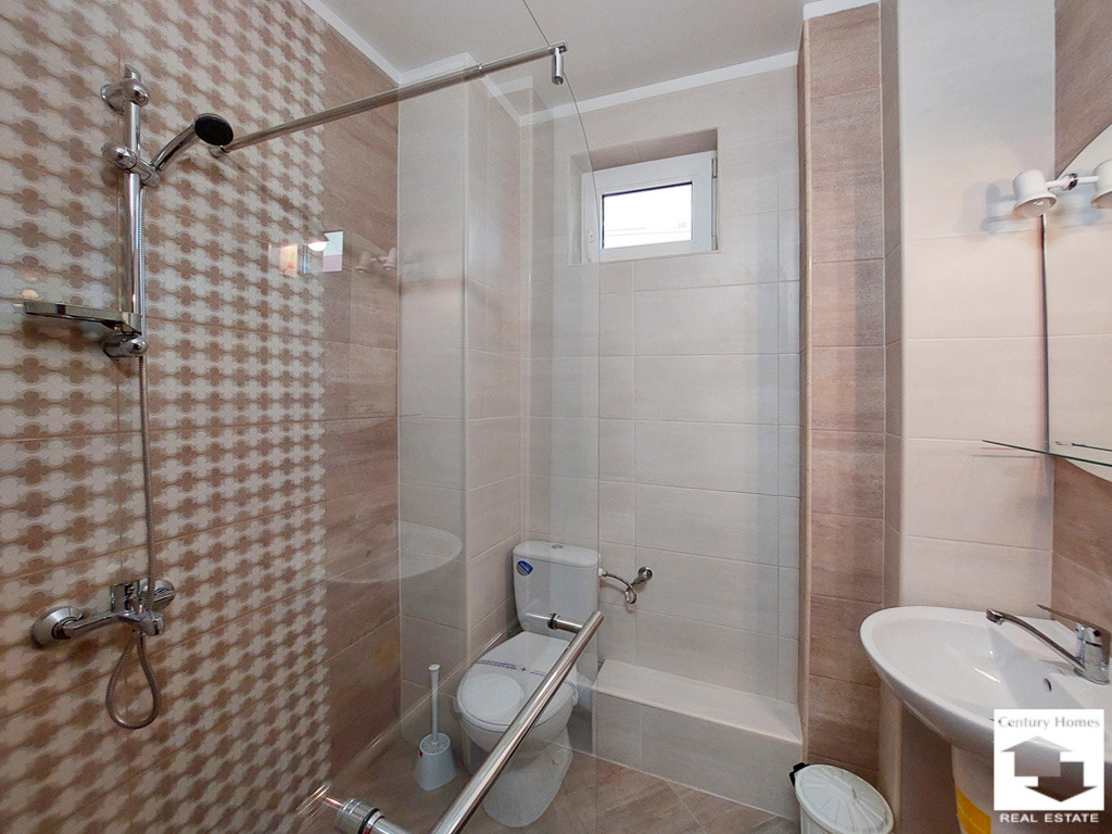 Интериорът е със следната степен на завършеност: подови настилки ламинат и теракот, стените са боядисани с латекс, PVC дограма и MDF интериорни врати. Имотът се предлага частично обзаведен и представлява отлична инвестиция за градска къща.