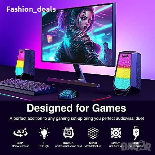 Нов USB Високоговорител за компютър, Bluetooth/RGB светлинни ефекти Игри