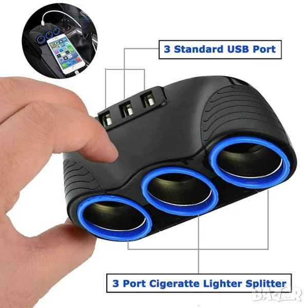 Разклонителите за автомобилни запалки са едно изключително полезно и важно приспособление. Този висококачествен разклонител за запалка за автомобил ви дава достъп до няколко допълнителни порта. С негова помощ ще можете да зареждате мобилния си апарат като едновременно използвате навигацията, без да се лишавате от работещата запалка. Трите USB порта позволяват едновременно зареждане на три телефона или други устройства, което е предимство както за водача на автомобила, така и за неговите пътници. Разклонител за запалка е идеално приспособление, което отговаря напълно на нуждите на всеки съвременен човек. Той позволява едновременно захранване на до три устройства по време на движение през USB портовете - смартфони, таблети и GPS навигационни системи, както и осигурява цели три гнезда за запалка. Ако държите купето на вашия автомобил да запази своята визия по време на път, то този разклонител за автомобилна запалка е идеалното решение за вас. Той изпъква с елегантния си и семпъл дизайн, а захранващият кабел е достатъчно дълъг, за да се избере най-удобното място за зареждане, спрямо нуждите и предпочитанията на водача и неговите пътници.