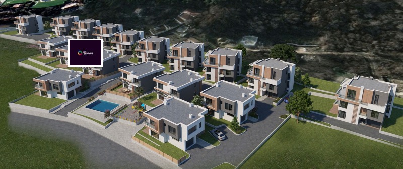 На вашето внимание предлагаме прекрасна триетажна къща, която е част от затворен комплекс в местност Горна Трака, състоящ се от шест двуетажни и десет триетажни къщи, разположени в богато озеленен парцел в тих и спокоен район.