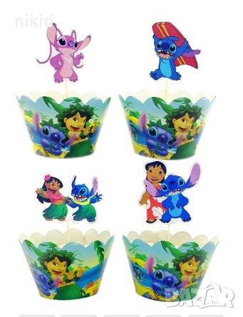 Лило и Стич lilo stitch 12 бр топери и кошнички украса декорация за мъфини кексчета парти → Обява 41467714